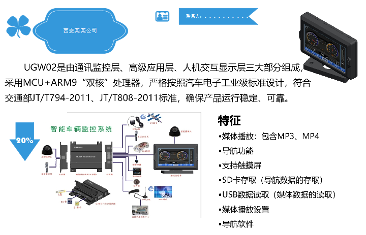 下图3是某公司的一款监控终端简易手册,给出了产品的组合图及简易产品介绍,包括公司名称、联系方式等。亦可采用图4所示的模板来设计一些简易的产品手册。