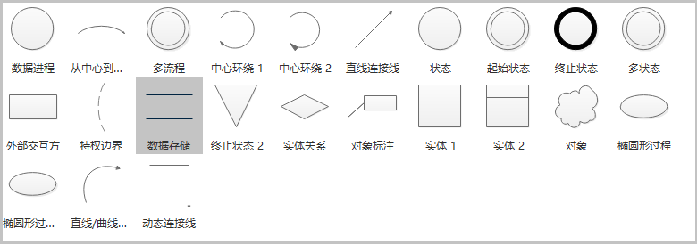 数据流程图包含四个基本符号:外部实体、处理过程、数据流和数据存储。通常外部实体用正方框表示,框中写上外部实体名称。处理过程用带圆角的长方形表示,而数据流用一个水平箭头或者垂直箭头表示。最后是数据存储,通常用开口的长方条表示。以亿图图示为例,下图详细展示了绘制数据数据流程图所需的四种基本符号。