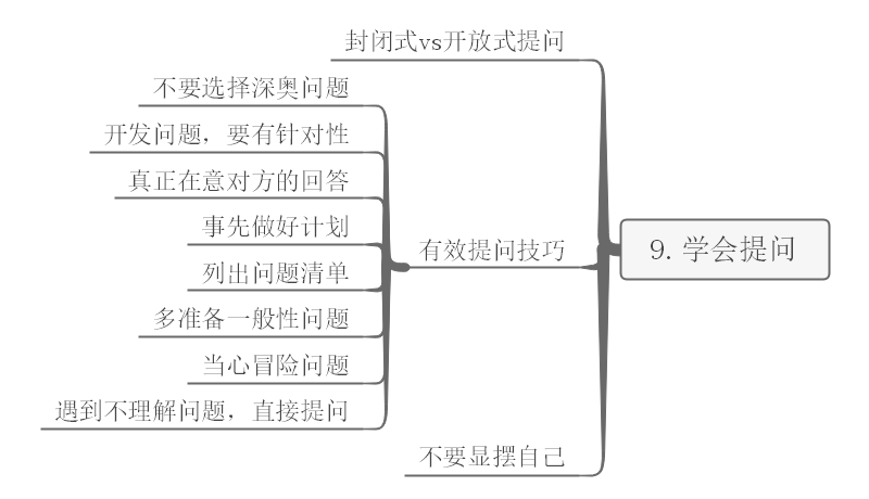 在沟通的过程中,提问的方式也很重要。开放式的问题和封闭式的问题要相结合,不能抛出一个对方接不上的问题,这样就把天聊死了;也不能净问些简单的封闭性问题,这会让对方认为你把他当傻子看。也没有人会喜欢一个随时在嘚瑟的大公鸡,所以尽量减少自我显摆的话语。