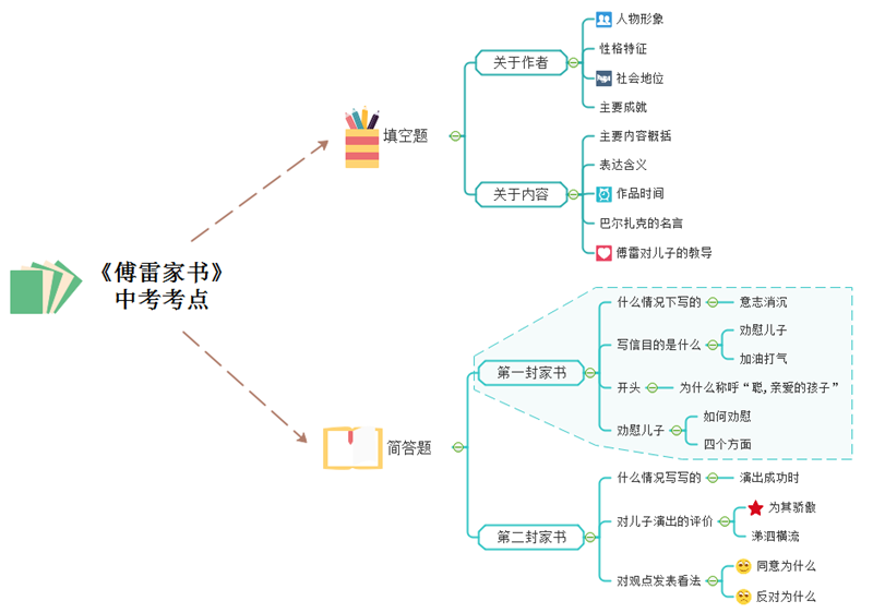作为中国家庭教育的典范,《傅雷家书》的部分内容被收录至人教版九年级上册语文课本中,并且作为考点之一,许多初中生也被要求阅读。这个年龄段想要真正理解这本书其实是有困难的,很多人都是因为考试才强制性阅读,所以很多学生党对这本书的评价并不友好。用思维导图软件来做考点复习,不仅能够帮助我们更好的理解记忆,也能提高我们的复习效率,学习更轻松。