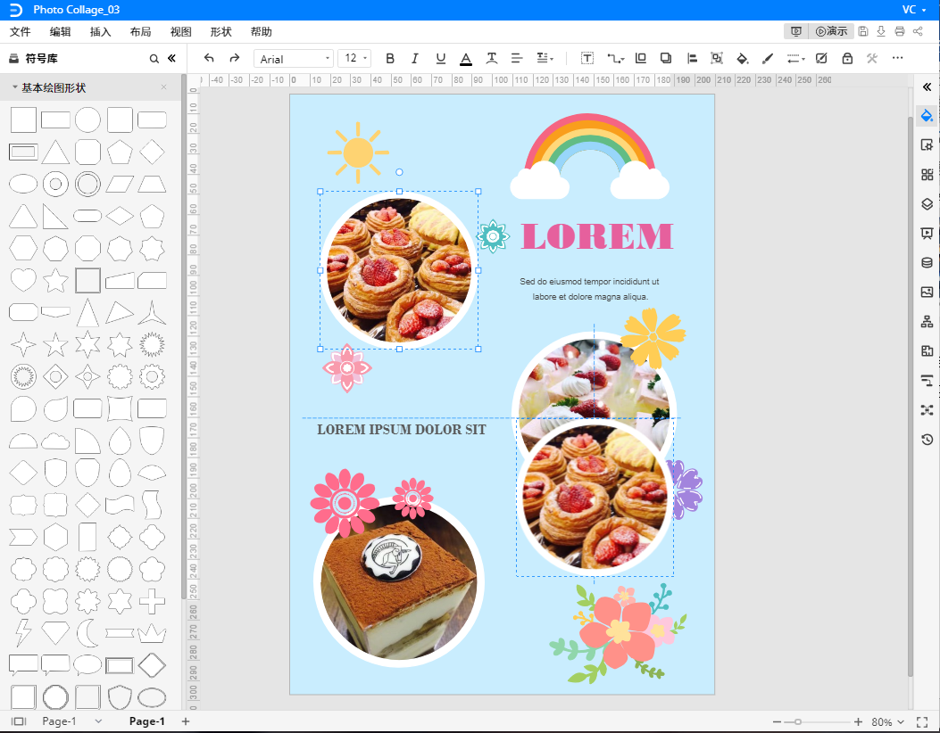 第五步:完成拼图的绘制后,可以点击右上角的保存、下载、打印、分享等按钮,对完成的拼图作品进行存档。也可以将图表导出为图片、PDF、PPT等格式。