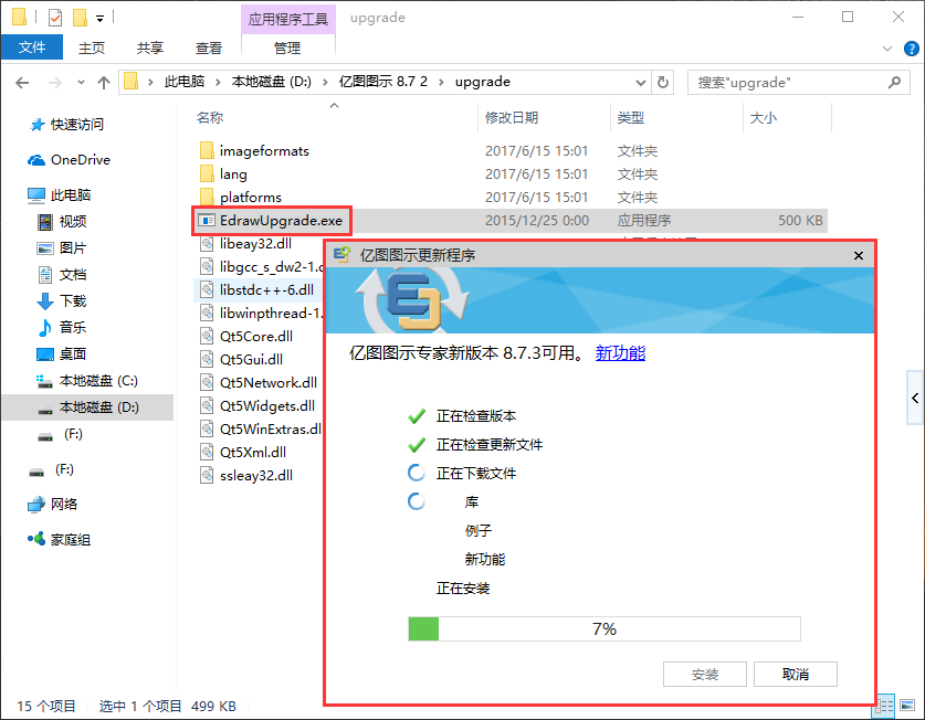 首先打开亿图软件的安装目录,找到目录下的upgrade文件夹,然后点击EdrawUpgrade.exe即可。